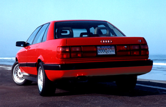 Note: clear side reflectors denoting european headlights, smoked front turn signals, all-red (V8) taillights, BBS-alike 16" wheels. Can't see anything down there where a Stebro replacement muffler would be...