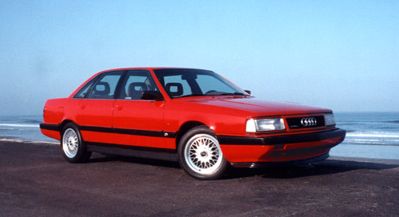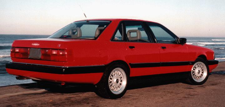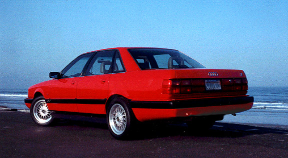 Note: clear side reflectors denoting european headlights, smoked front turn signals, all-red (V8) taillights, BBS-alike 16" wheels. Can't see anything down there where a Stebro replacement muffler would be...