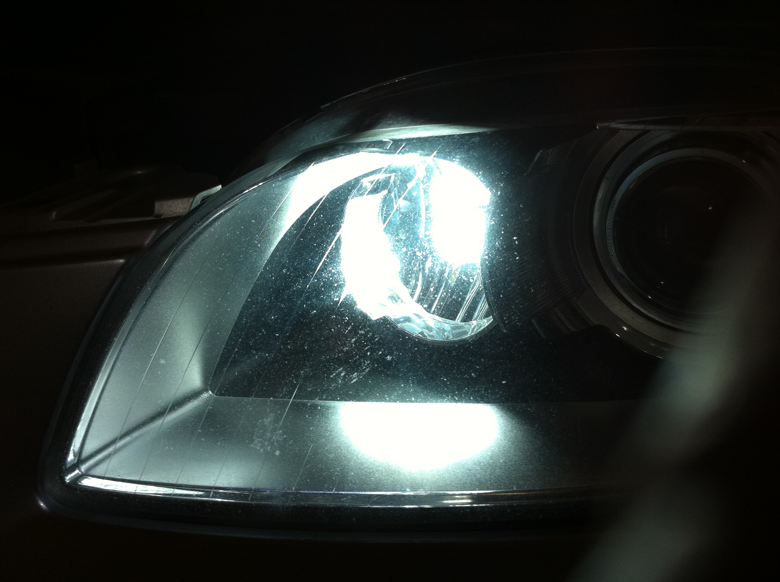 LED daytime running light bulbs. Original sockets were looking a bit toasted from 20W bulbs running all the time. Still trying to figure out how to disable the bulb-out instrument panel warning with the LED bulbs. The first LED bulbs were getting flickery so replaced with some newer ones after 10 years.